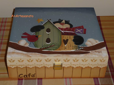 Foi a 1ª caixa de café que fiz e usei um desenho da Renné Mullins.