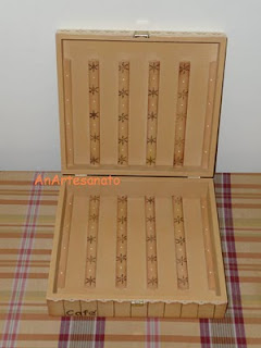 Depois de algum tempo sem novidades aqui vos deixo esta caixa de café que finalmente acabei, isto do calor dá muita preguiça e moleza! Mas já está! Foi toda pintada à mão, e no interior tem aplicações de carimbos.